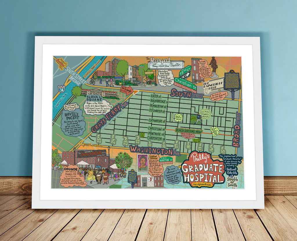 Map of Graduate Hospital, South of South, Philly neighborhood, Philly Map Art, Pennsylvania (customization and framing options) (Copy)